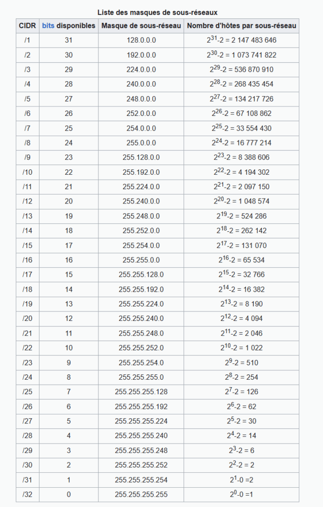Pour se faire il va s’appuyer sur un masque de sous réseau, ainsi lorsque l’on lit la syntaxe suivante 192.168.100.0/24, cela veut dire que comme l’adresse est codée sur 32 bits que 24 bits sont masqués.